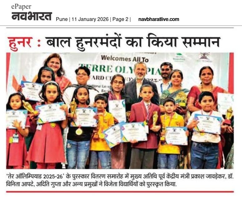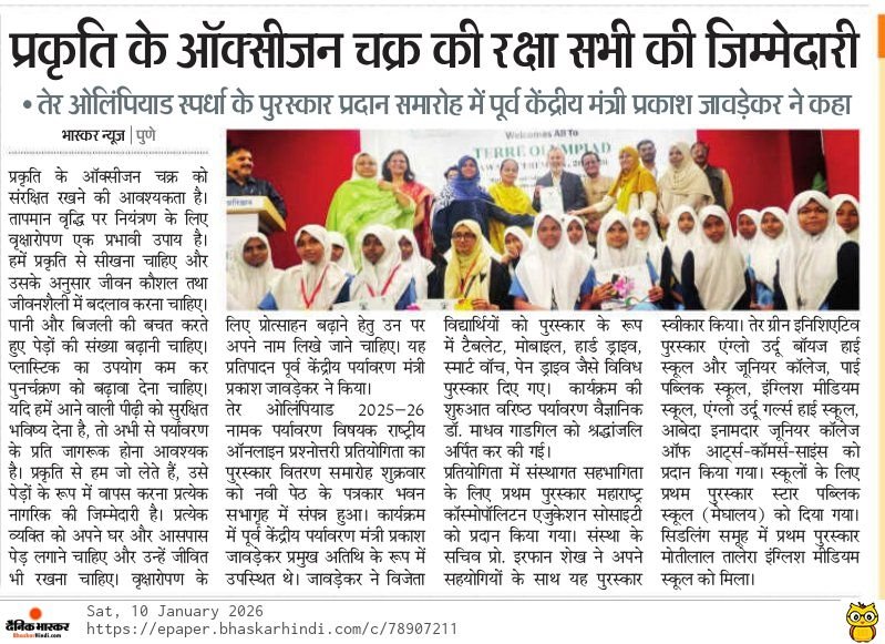 To felicitate and encourage the winners of the national-level online environmental quiz competition TERRE Olympiad 2024-25, TERRE Policy Centre organized an Award Ceremony on 15th January 2025 at Patrakar Bhavan, Ganjve Chowk, Sadashiv Peth, Pune.